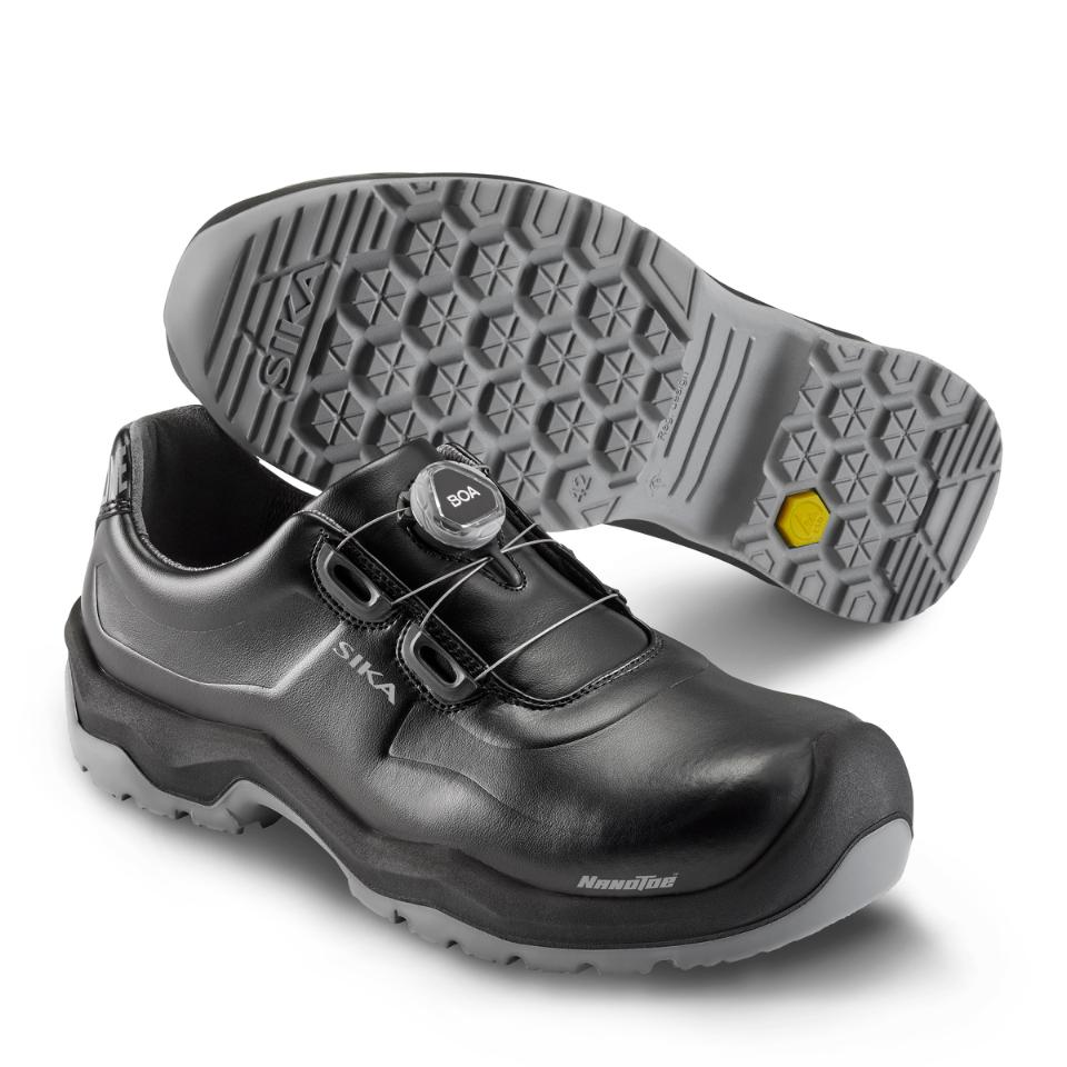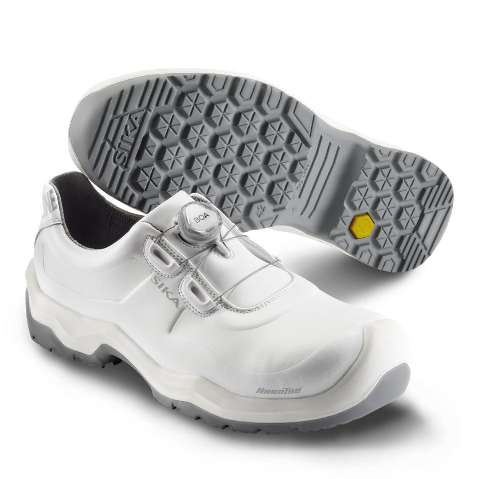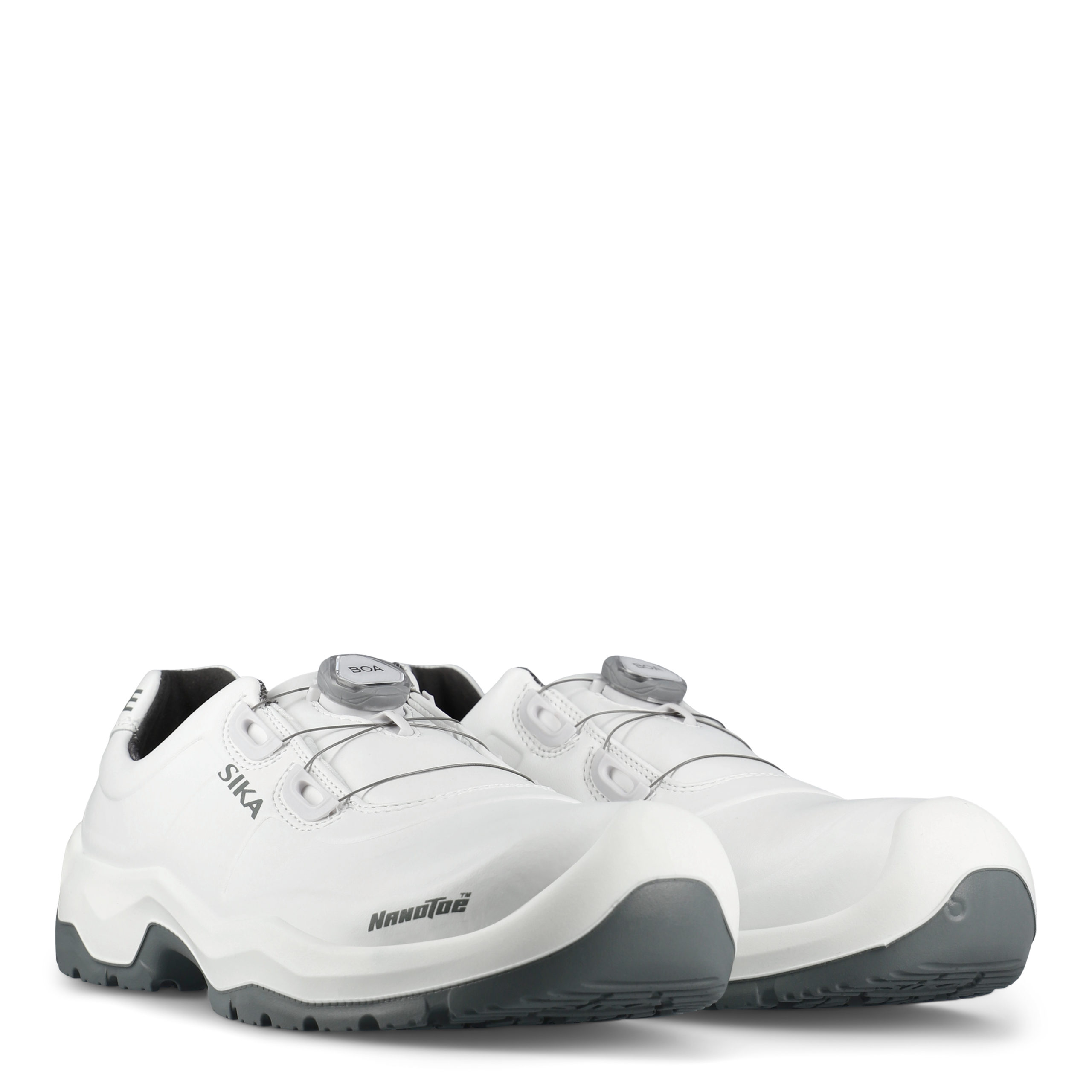 Extra halkhämmande snörsko med BOA® Fit System och Nanotoe™. Lätt att rengöra. Yttersulan har solid greppsula med stabiliserande gelänk som motverkar stukningar och fördelar trycket jämnt över hela sulan. Skon är gjord i ventilerande, slitstarkt och vattenavvisande Permair®-läder, medan innerfodret är av svettransporterande och snabbtorkande Sympatex Moisture-Tech® med extra förstärkning i hälen. Ventilerande, tvättbar och antibakteriell inläggssula. Extra tåförstärkning, ESD-godkänd och PVC-fri. Med lätt, tunn och stark tåhätta av carbon nanotube-förstärkt glasfiber.