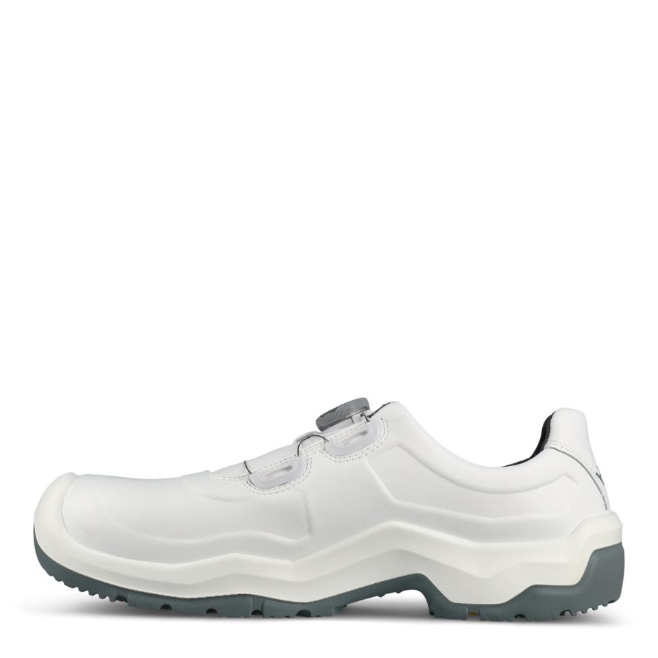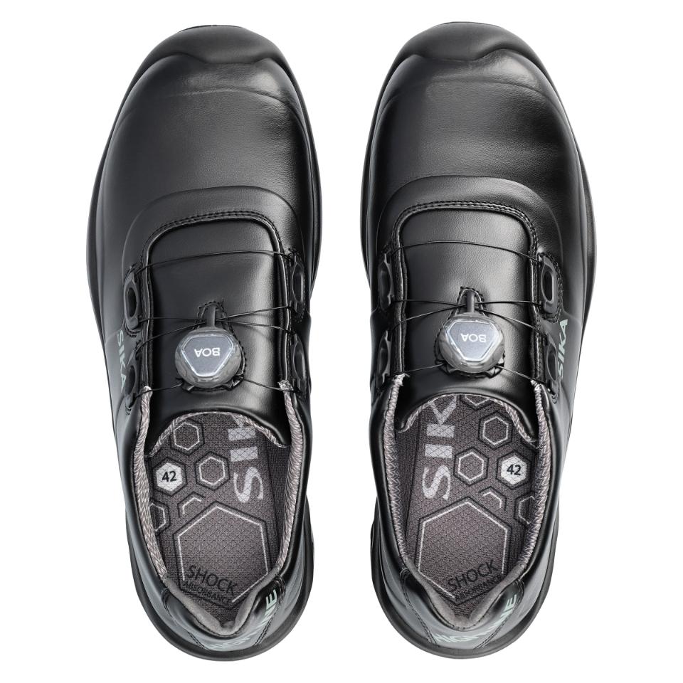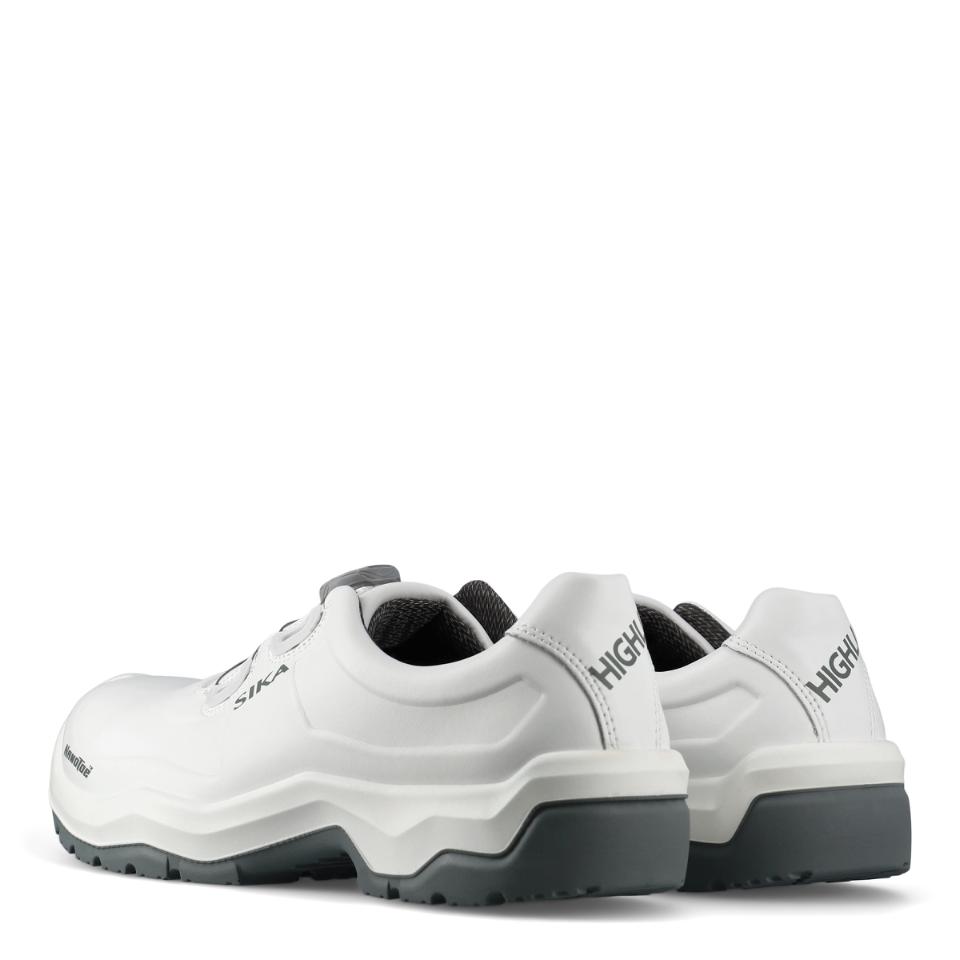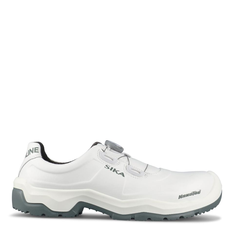 Extra halkhämmande snörsko med BOA® Fit System och Nanotoe™. Lätt att rengöra. Yttersulan har solid greppsula med stabiliserande gelänk som motverkar stukningar och fördelar trycket jämnt över hela sulan. Skon är gjord i ventilerande, slitstarkt och vattenavvisande Permair®-läder, medan innerfodret är av svettransporterande och snabbtorkande Sympatex Moisture-Tech® med extra förstärkning i hälen. Ventilerande, tvättbar och antibakteriell inläggssula. Extra tåförstärkning, ESD-godkänd och PVC-fri. Med lätt, tunn och stark tåhätta av carbon nanotube-förstärkt glasfiber.