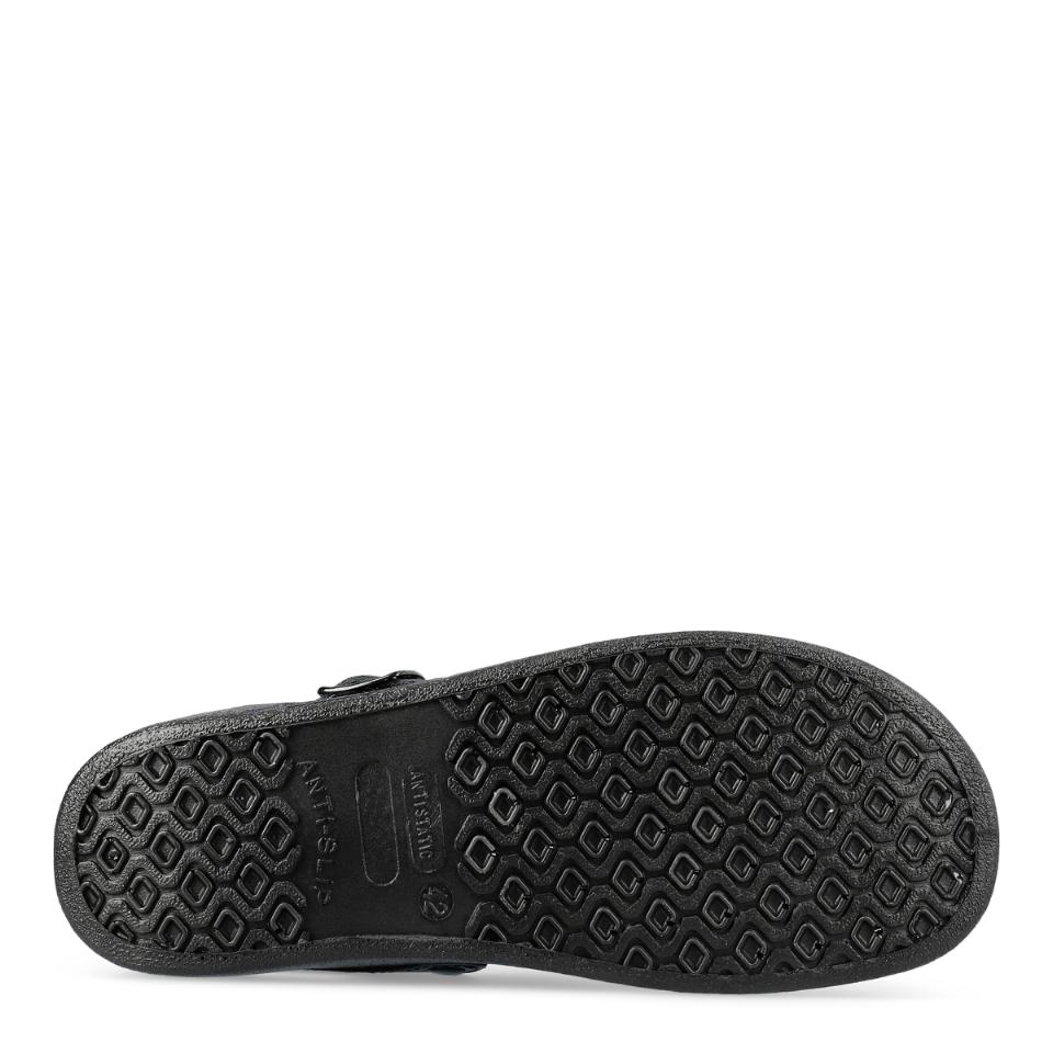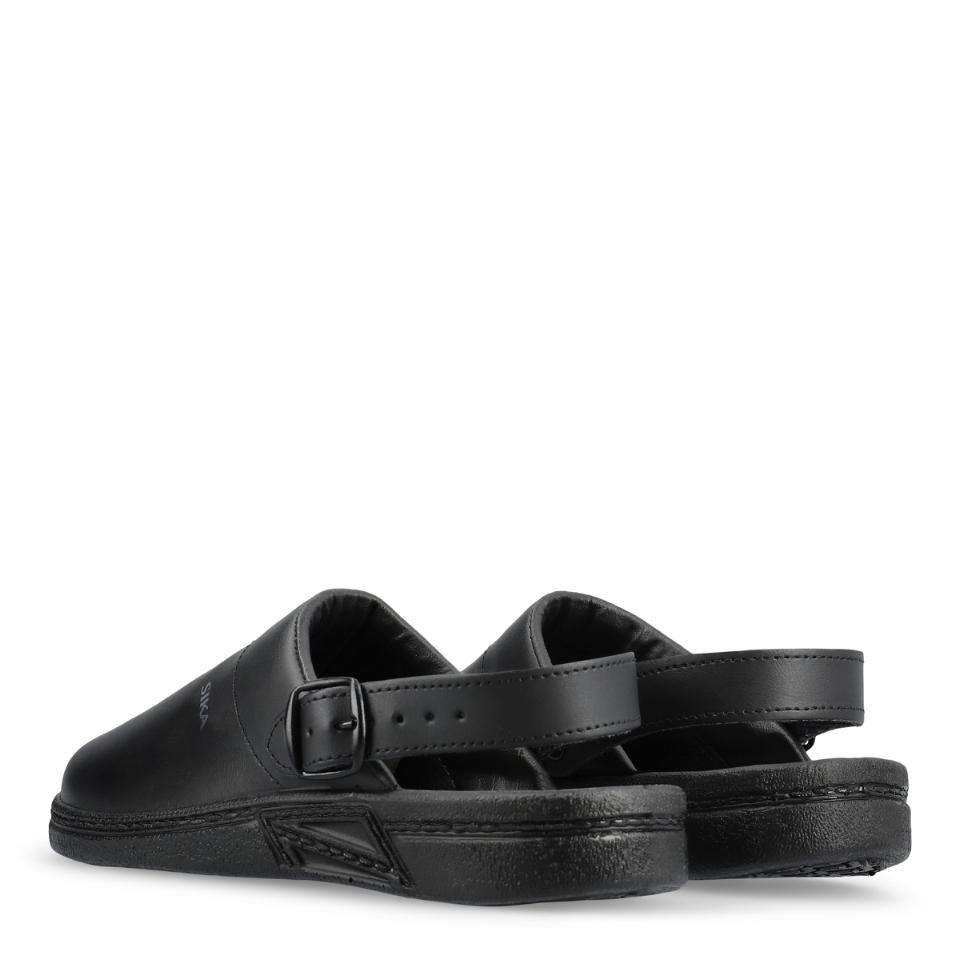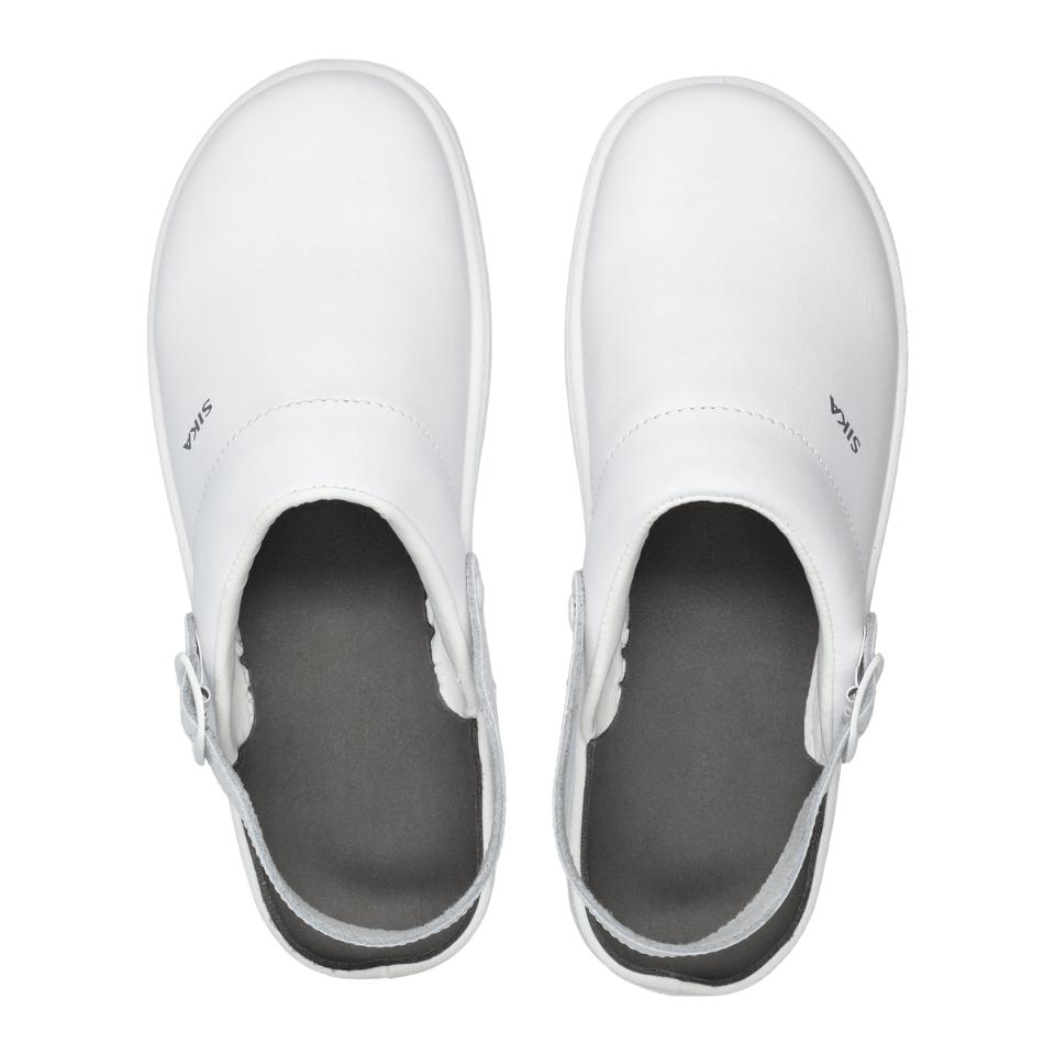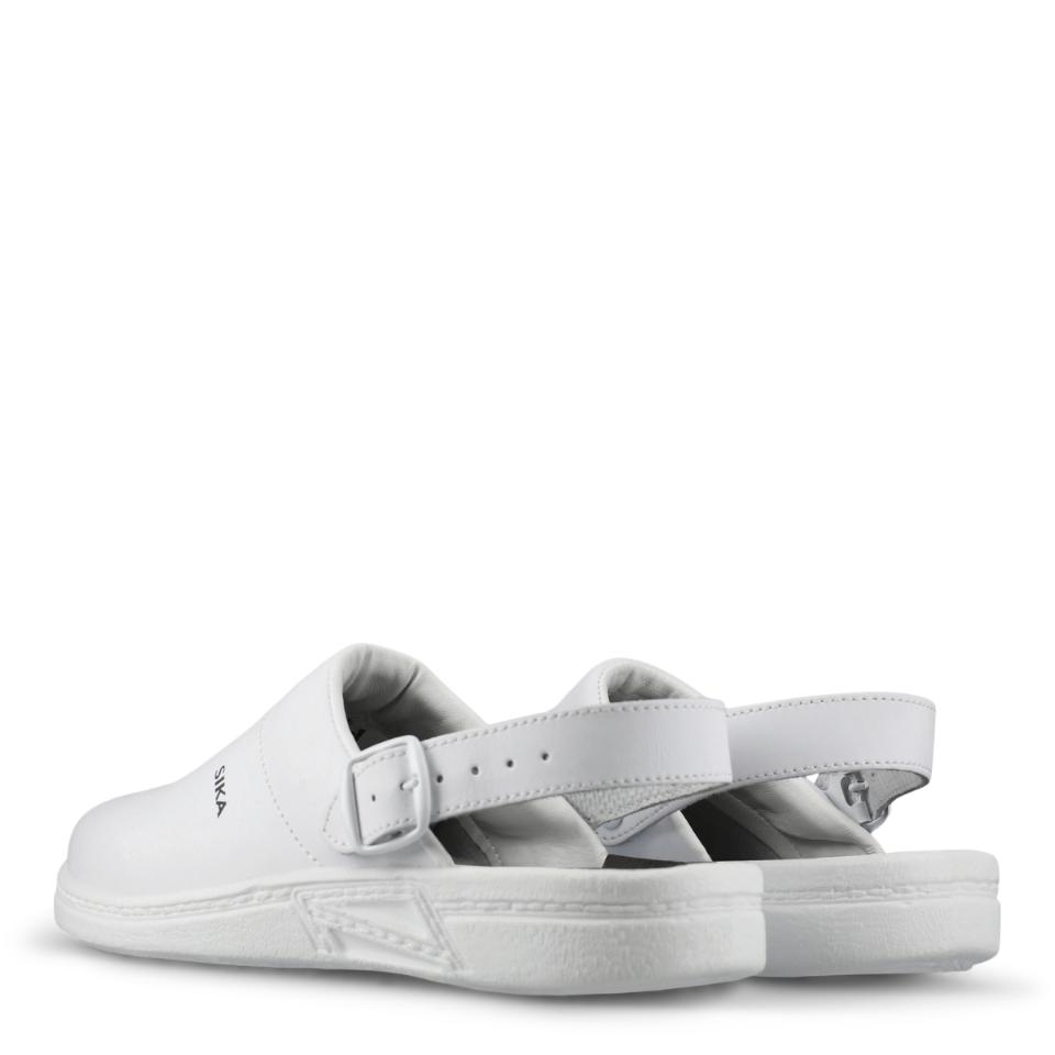 Pantolette med vändbar och justerbar hälrem. Av vattenavvisande läder som andas. Mjuk innersula av mocka. Halkhämmande PU-yttersula. OB+A+E+FO+SRC.