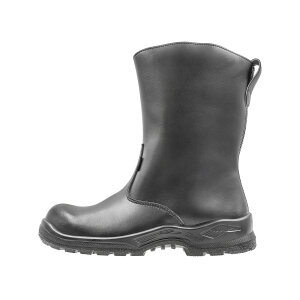 Halvhög vinterstövel med varmt teddyfoder. Ovanmaterialet är vattenavstötande och slitstarkt PU-belagt skinn. Polyuretansulan ger bra grepp också i kyla, tål olja och olika kemikalier. Bred XL-läst.